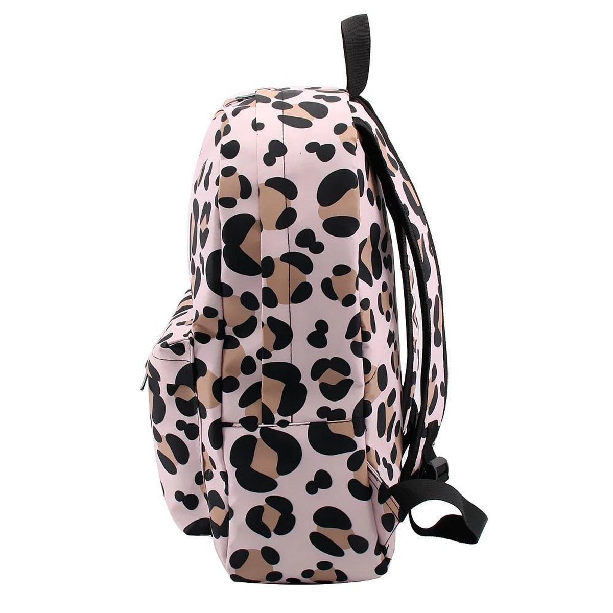 Het unieke roze en bruine panterprint design maakt deze rugzak een echte blikvanger. Of je nu naar school gaat, naar je werk of gewoon een dagje uit bent, met deze rugzak maak je altijd een stijlvol statement.
